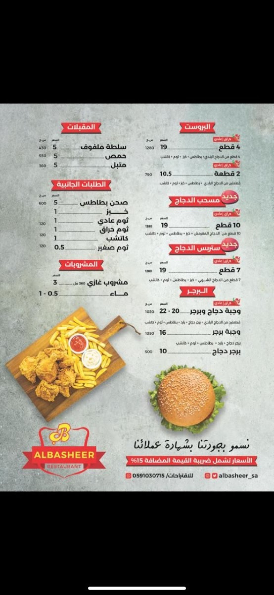 The menu at Al Bashir Restaurants offers a straightforward selection focused on classic fast food comfort, centered around expertly prepared chicken dishes. Whether you're stopping by for a quick lunch or a casual dinner, the menu feels familiar and satisfying, making it an easy choice when hunger calls for simple, hearty flavors.
